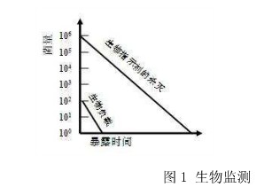 要尋找適合的滅菌監(jiān)控手段,shou先需了解影響滅菌效果的主要因素。在滅菌環(huán)境相同的情況下,產(chǎn)品上負(fù)載的微生物的抗力和數(shù)量,是影響滅菌效率的關(guān)鍵因素。通常,由于對于原材料的來源和微生物的數(shù)量有嚴(yán)格要求,加上對于儲存和生產(chǎn)車間的潔凈要求(不同產(chǎn)品有不同要求),在滅菌前所攜帶的微生物的數(shù)量是有限的。生物監(jiān)測使用所攜帶微生物的數(shù)量和抗力都遠(yuǎn)大于實(shí)際生物負(fù)載的生物指示劑,與生物負(fù)載處于相同或更難滅菌的環(huán)境中(如將生物指示劑放置于過程挑戰(zhàn)設(shè)備{Process Challenge Device}中) 同時(shí)進(jìn)行滅菌,然后觀察生物指示劑中微生物的殺滅情況,來判斷整個(gè)負(fù)載的有效性。圖1解釋了生物指示劑監(jiān)控整個(gè)負(fù)載并可靠反映其效果的原理:當(dāng)生物指示劑被殺滅的時(shí)候,生物負(fù)載早已被殺滅了。